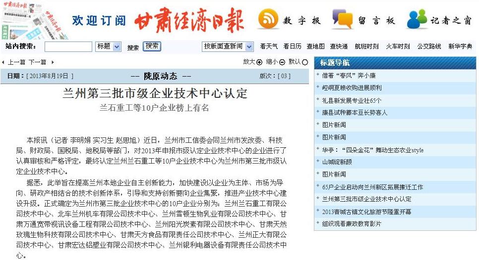 熱烈慶賀我公司被正式確定為蘭州市第三批企業(yè)技術(shù)中心